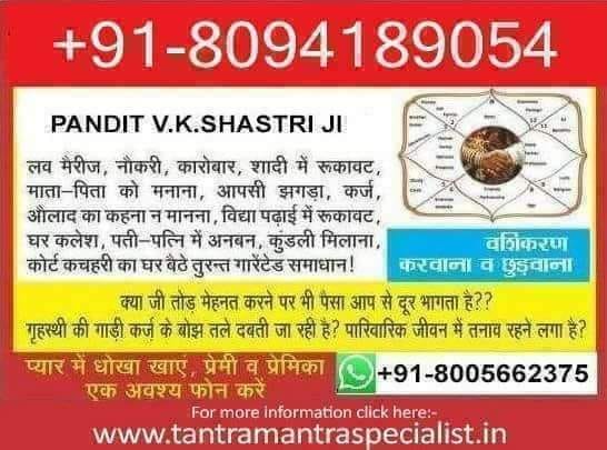 Best~Astrologer^^^Specialist Baba ji 72,Hours Soution Your Problem. In India +91-8094189054 all type problems solve by BABA JI +91-8094189054 ji only 72 hours….he can get result your hand… specialist.. Business Loss Problem Solve black magic vashikaran forigen tarvling,husband wife distance,love marrige,green card,vashikaran etc… +91-8094189054 note – all your love marriage problems and your familey problem solution in 72 hours…. 1. Like jadu-tona. 2. Business related problems. 3. Husband and wife relationship. 4. Be free from enemy / 2nd wife 5. Settle in foreign. 6. Desired love. 7. Disputes between husband / wife. 8. Problems in study. 9. Childless Women. 10. Intoxication. 11. Physical problems. 12. Domestic controversy 13. Problems in family relations.- 14. Promotions or willful marriage. 15. Girls Sex Problem solution 16. Divorcemarital problem solution. {+91-8094189054} 17. Control your lover in your hand by Black Magic. 18. Get Back your Lover when His Moved on………! if you have any problem with marriage life so dont worry Baba ji give you solution of your relationship problem… +91-8094189054 only72 hours Get all solutions in your life as you desire. Call to baba ji and get advise from him. there is no Consultation Charges. Any problems in the life get solution as your desire. GURANTEED RESULT WITHIN 72 hours → for more informaiton click here → www.tantramantraspecialist.in