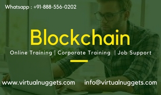 Blockchain OnlineTraining which we are offering is made open for all the aspirants who arehaving a keen desire in driving their career in the profession of Blockchaintechnology. Blockchain Online Training at VirtualNuggets will surely set yourcareer on the path to success by helping you grab hold of the employmentopportunities from the top-notching multinational companies. For furtherdetails of course contact