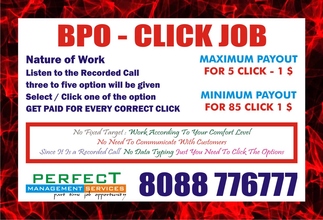 1. Day shift /No Targets/NoCalling/No Product Selling. 2. Work from home & earn weekly income thisposition is open for people in service/business/college. Evenretired/housewives/fresher can join us. Kindly call us nOw