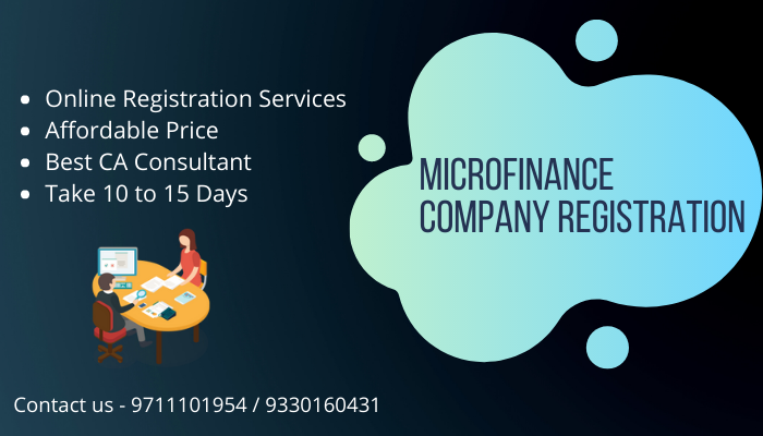 A Microfinance company is a kind of NBFCtype of financial institution and it can work small lending tasks to financethe low-income group of the people. Get online Microfinance companyregistration process at affordable price and no hidden charge apply totallyonline procedure and find top CA consultant for it. Get more information callus – 9711101954